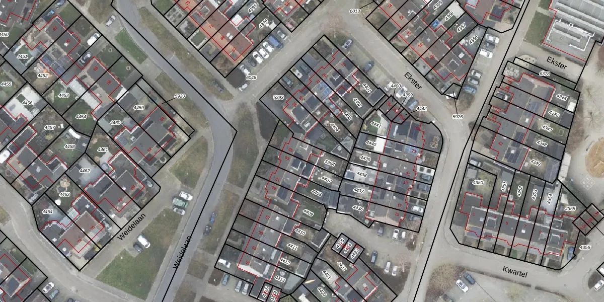 Weidelaan 65 is gelegen op kadastraal perceel RTE00A5394. Deze kadastrale aanduiding is uniek en wordt gebruikt door het Kadaster om eigendomsrechten en andere zakelijke rechten vast te leggen. Het perceel maakt onderdeel uit van de kadastrale gemeente Raalte.