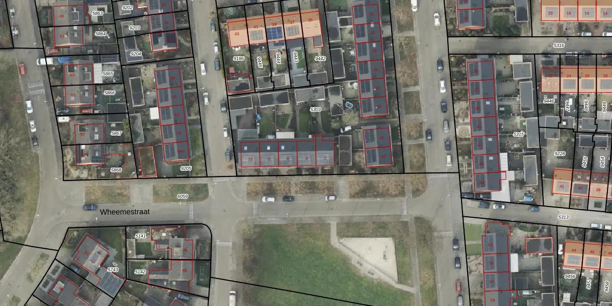 Het perceel waarop Wheemestraat 4 staat heeft een oppervlakte van 2223 m². Dit is een zeer groot perceel. De perceeloppervlakte wordt geregistreerd door het Kadaster. Gedetailleerde informatie over de maten van dit perceel kunt u vinden in het rapport Kadastrale kaart met maatvoering van Wheemestraat 4.