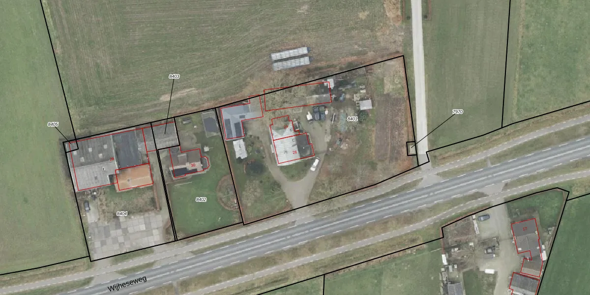Wijheseweg 26 is gelegen op kadastraal perceel RTE00L8401. Deze kadastrale aanduiding is uniek en wordt gebruikt door het Kadaster om eigendomsrechten en andere zakelijke rechten vast te leggen. Het perceel maakt onderdeel uit van de kadastrale gemeente Raalte.