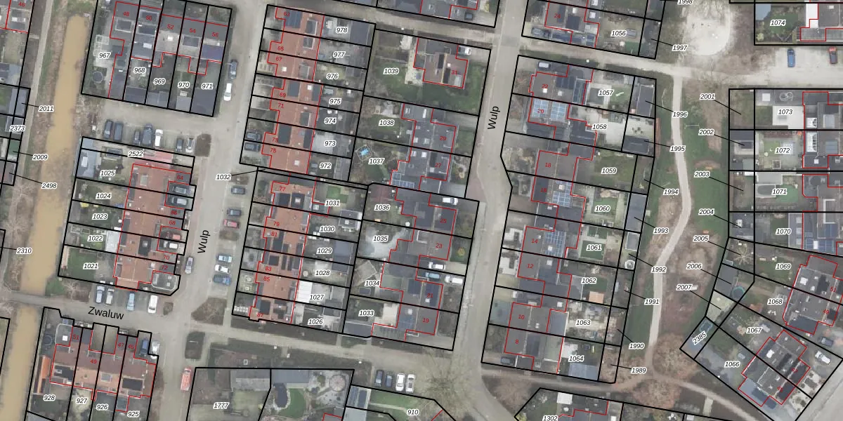 Het perceel waarop Wulp 25 staat heeft een oppervlakte van 239 m². Dit is een middelgroot perceel. De perceeloppervlakte wordt geregistreerd door het Kadaster. Gedetailleerde informatie over de maten van dit perceel kunt u vinden in het rapport Kadastrale kaart met maatvoering van Wulp 25.