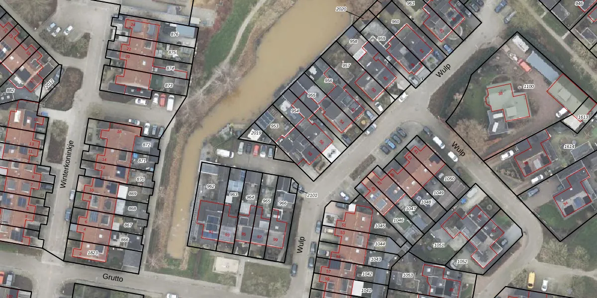 Het perceel waarop Wulp 58 staat heeft een oppervlakte van 238 m². Dit is een middelgroot perceel. De perceeloppervlakte wordt geregistreerd door het Kadaster. Gedetailleerde informatie over de maten van dit perceel kunt u vinden in het rapport Kadastrale kaart met maatvoering van Wulp 58.