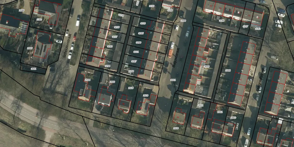 Het perceel waarop Baljuwstraat 1 staat heeft een oppervlakte van 188 m². Dit is een middelgroot perceel. De perceeloppervlakte wordt geregistreerd door het Kadaster. Gedetailleerde informatie over de maten van dit perceel kunt u vinden in het rapport Kadastrale kaart met maatvoering van Baljuwstraat 1.