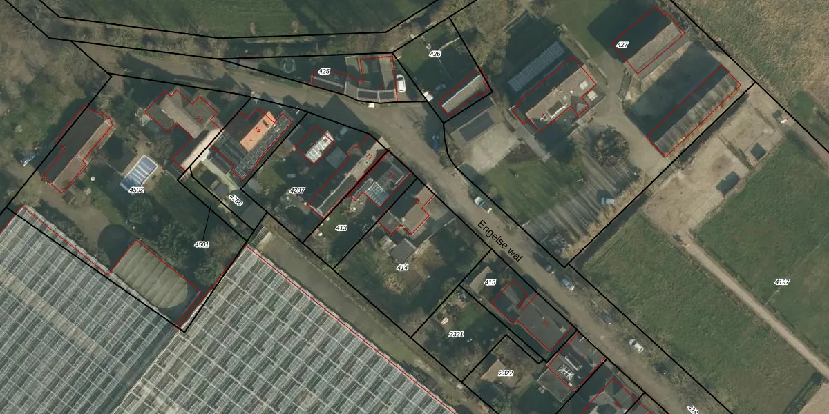 Het perceel waarop Engelse wal 13 staat heeft een oppervlakte van 735 m². Dit is een groot perceel. De perceeloppervlakte wordt geregistreerd door het Kadaster. Gedetailleerde informatie over de maten van dit perceel kunt u vinden in het rapport Kadastrale kaart met maatvoering van Engelse wal 13.