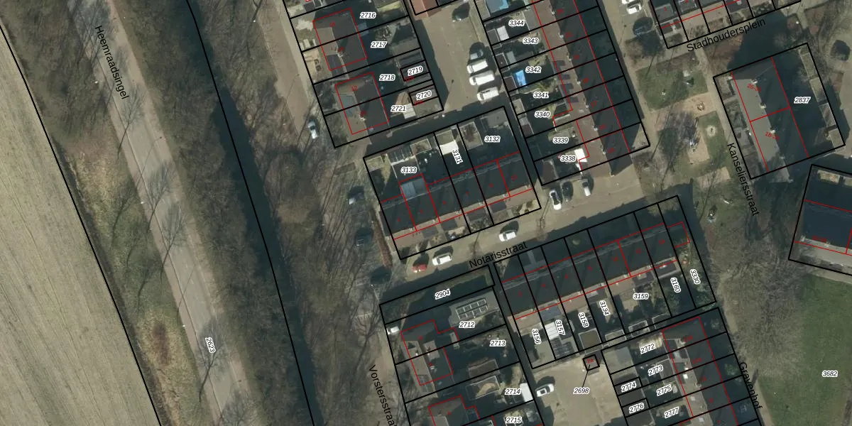 Het perceel waarop Notarisstraat 3 staat heeft een oppervlakte van 447 m². Dit is een groot perceel. De perceeloppervlakte wordt geregistreerd door het Kadaster. Gedetailleerde informatie over de maten van dit perceel kunt u vinden in het rapport Kadastrale kaart met maatvoering van Notarisstraat 3.