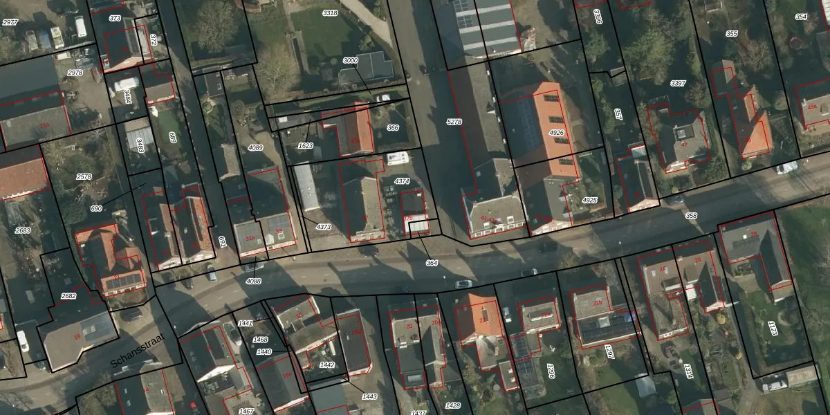 Het perceel waarop Schansstraat 37-b staat heeft een oppervlakte van 640 m². Dit is een groot perceel. De perceeloppervlakte wordt geregistreerd door het Kadaster. Gedetailleerde informatie over de maten van dit perceel kunt u vinden in het rapport Kadastrale kaart met maatvoering van Schansstraat 37-b.
