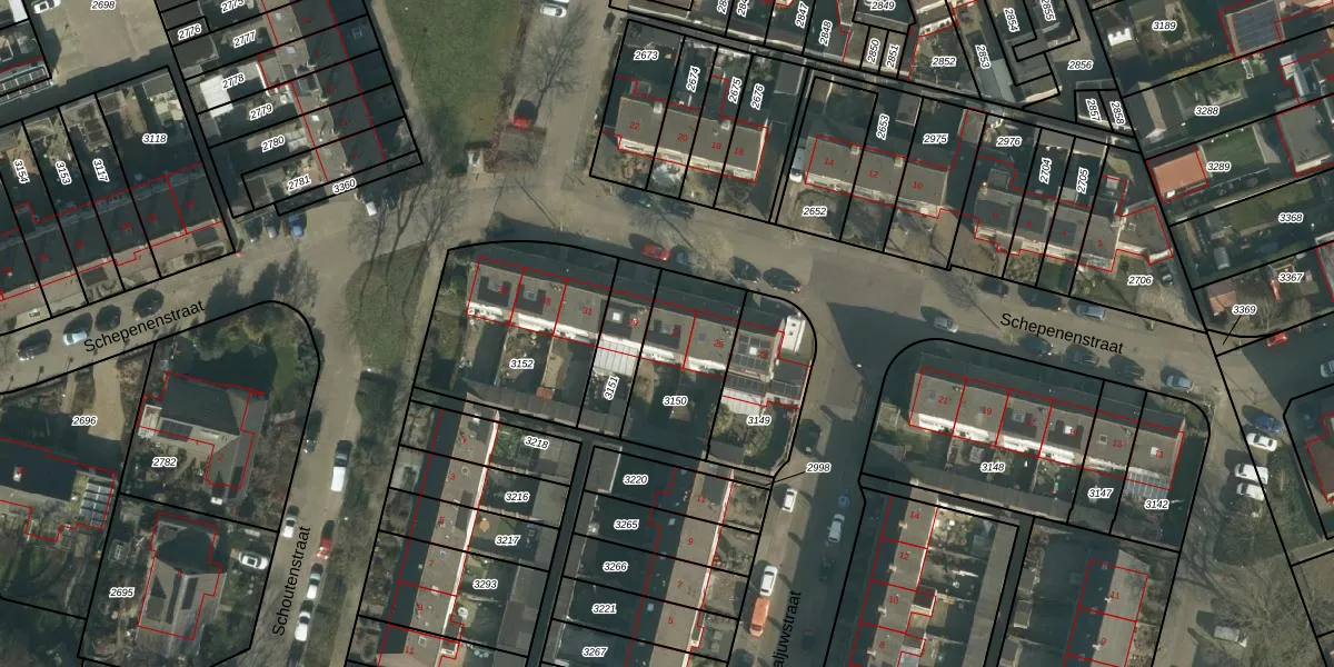 Schepenenstraat 27 is gelegen op kadastraal perceel RDK02G3150. Deze kadastrale aanduiding is uniek en wordt gebruikt door het Kadaster om eigendomsrechten en andere zakelijke rechten vast te leggen. Het perceel maakt onderdeel uit van de kadastrale gemeente Raamsdonk.
