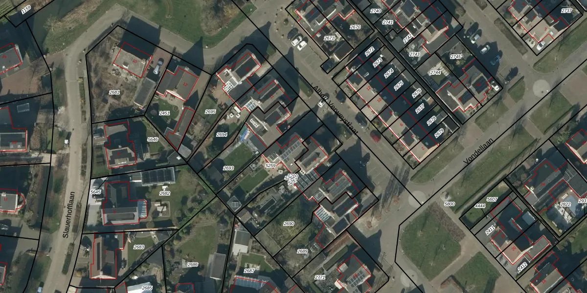 Het perceel waarop Albert Verweystraat 7 staat heeft een oppervlakte van 417 m². Dit is een groot perceel. De perceeloppervlakte wordt geregistreerd door het Kadaster. Gedetailleerde informatie over de maten van dit perceel kunt u vinden in het rapport Kadastrale kaart met maatvoering van Albert Verweystraat 7.