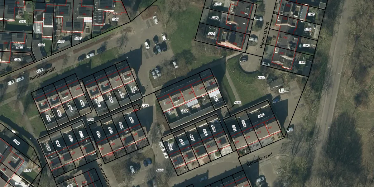 Het perceel waarop Benraatshoef 123 staat heeft een oppervlakte van 569 m². Dit is een groot perceel. De perceeloppervlakte wordt geregistreerd door het Kadaster. Gedetailleerde informatie over de maten van dit perceel kunt u vinden in het rapport Kadastrale kaart met maatvoering van Benraatshoef 123.