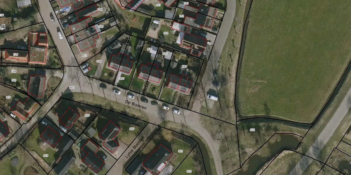 Het perceel waarop De Buorren 29 staat heeft een oppervlakte van 528 m². Dit is een groot perceel. De perceeloppervlakte wordt geregistreerd door het Kadaster. Gedetailleerde informatie over de maten van dit perceel kunt u vinden in het rapport Kadastrale kaart met maatvoering van De Buorren 29.