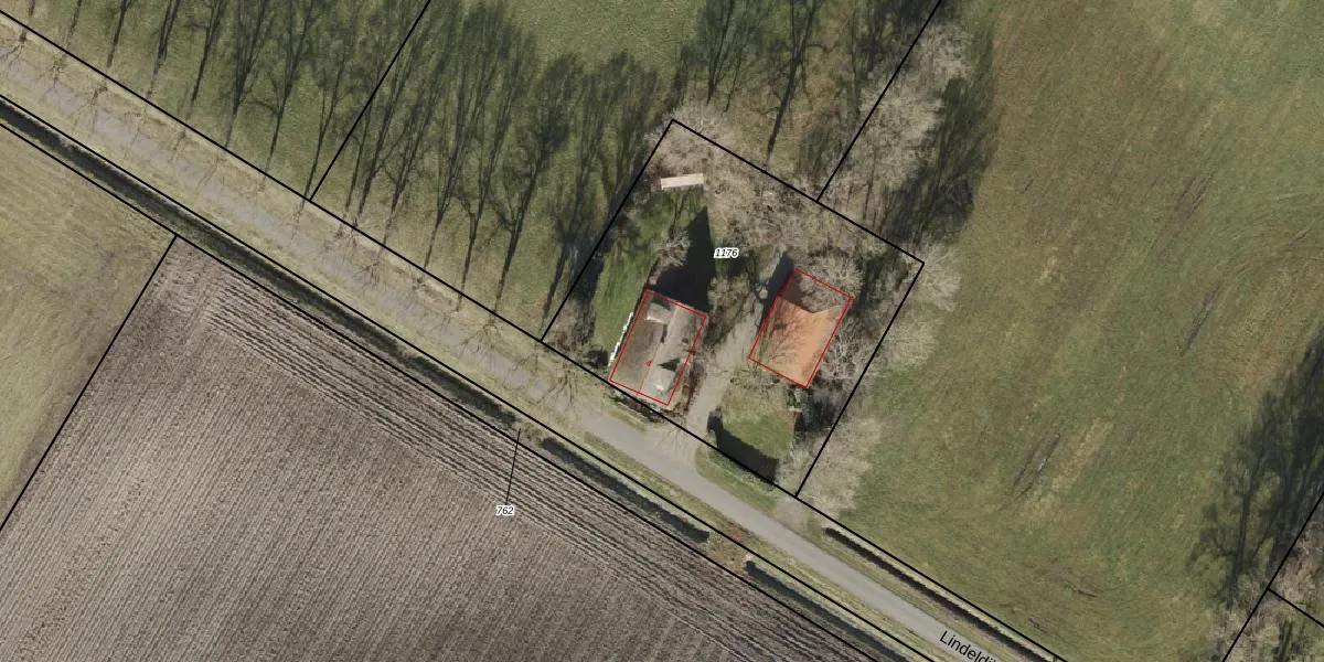 Het perceel waarop Lindeldijk 4 staat heeft een oppervlakte van 1765 m². Dit is een zeer groot perceel. De perceeloppervlakte wordt geregistreerd door het Kadaster. Gedetailleerde informatie over de maten van dit perceel kunt u vinden in het rapport Kadastrale kaart met maatvoering van Lindeldijk 4.