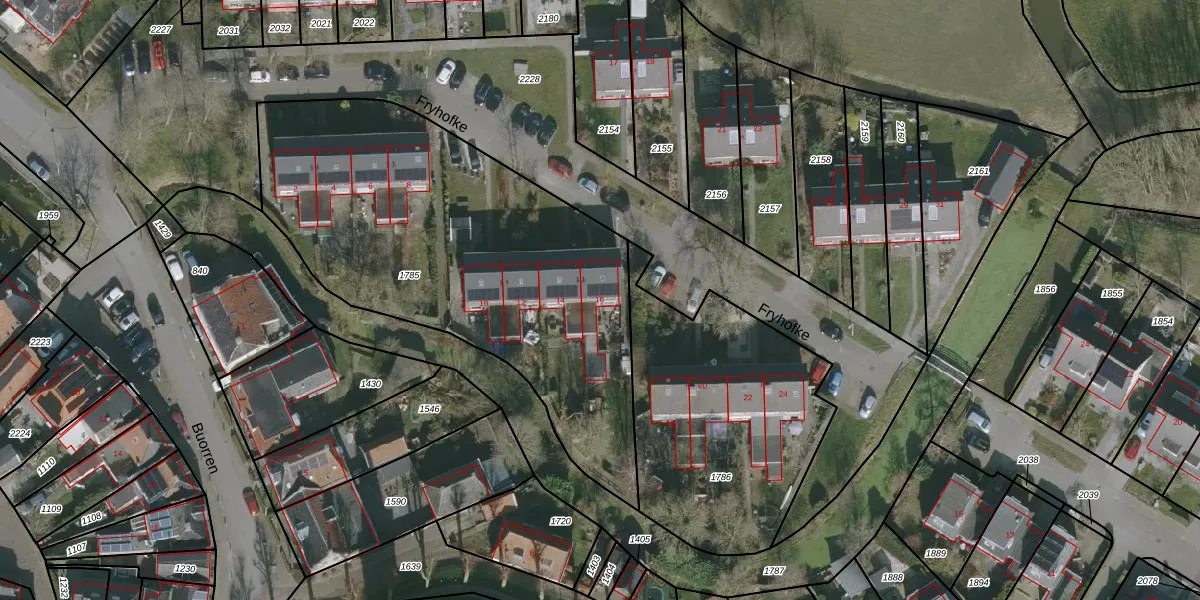 Het perceel waarop Fryhofke 16 staat heeft een oppervlakte van 2160 m². Dit is een zeer groot perceel. De perceeloppervlakte wordt geregistreerd door het Kadaster. Gedetailleerde informatie over de maten van dit perceel kunt u vinden in het rapport Kadastrale kaart met maatvoering van Fryhofke 16.
