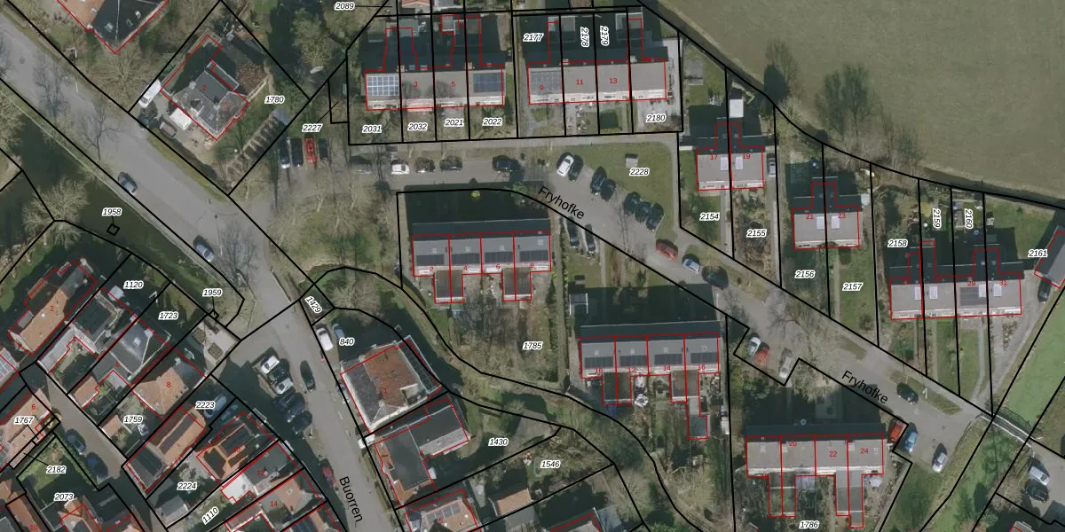 Het perceel waarop Fryhofke 8 staat heeft een oppervlakte van 2160 m². Dit is een zeer groot perceel. De perceeloppervlakte wordt geregistreerd door het Kadaster. Gedetailleerde informatie over de maten van dit perceel kunt u vinden in het rapport Kadastrale kaart met maatvoering van Fryhofke 8.