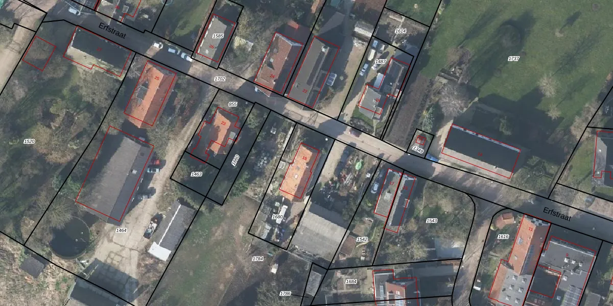 Het perceel waarop Erfstraat 19 staat heeft een oppervlakte van 540 m². Dit is een groot perceel. De perceeloppervlakte wordt geregistreerd door het Kadaster. Gedetailleerde informatie over de maten van dit perceel kunt u vinden in het rapport Kadastrale kaart met maatvoering van Erfstraat 19.