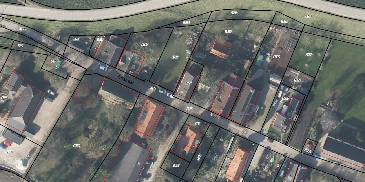 Gebruik de zoekbalk of klik op een perceel voor informatie over de adressen binnen dit perceel.