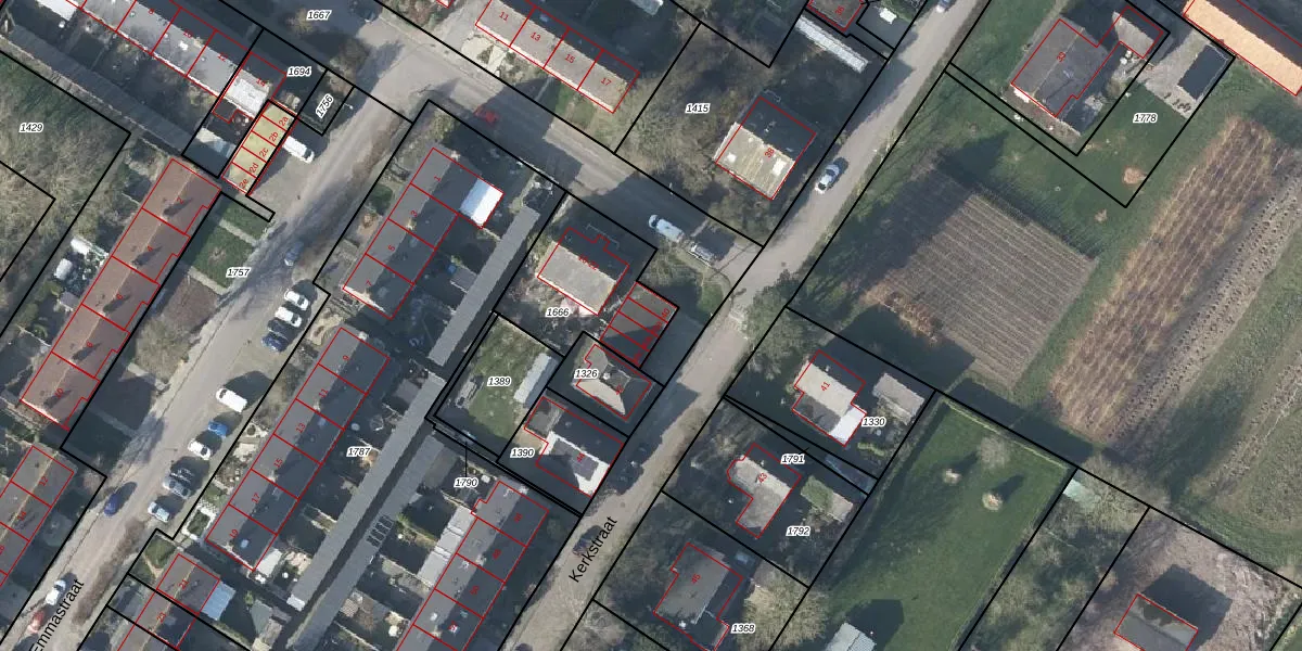 Het perceel waarop Kerkstraat 40-a staat heeft een oppervlakte van 430 m². Dit is een groot perceel. De perceeloppervlakte wordt geregistreerd door het Kadaster. Gedetailleerde informatie over de maten van dit perceel kunt u vinden in het rapport Kadastrale kaart met maatvoering van Kerkstraat 40-a.