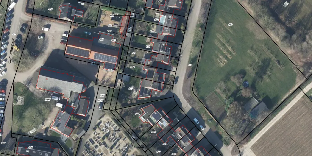 Het adres is gelegen op perceel 826 in de sectie E en de kadastrale gemeente Heteren. De kadastrale aanduiding is aldus HTR00-E-826. Het perceel is kleiner dan gemiddeld in Heteren. Het perceel is 296 m² groot, terwijl het gemiddelde ligt op 5525,45 m². Het grootste perceel in de kadastrale gemeente is 55,5 ha. Het kleinste perceel heeft een oppervlakte van 1 m². Op het perceel bevinden zich geen andere adressen. In de Basisregistratie Kadaster (BRK) werden de grenzen van het perceel geregistreerd op 16-07-2012.