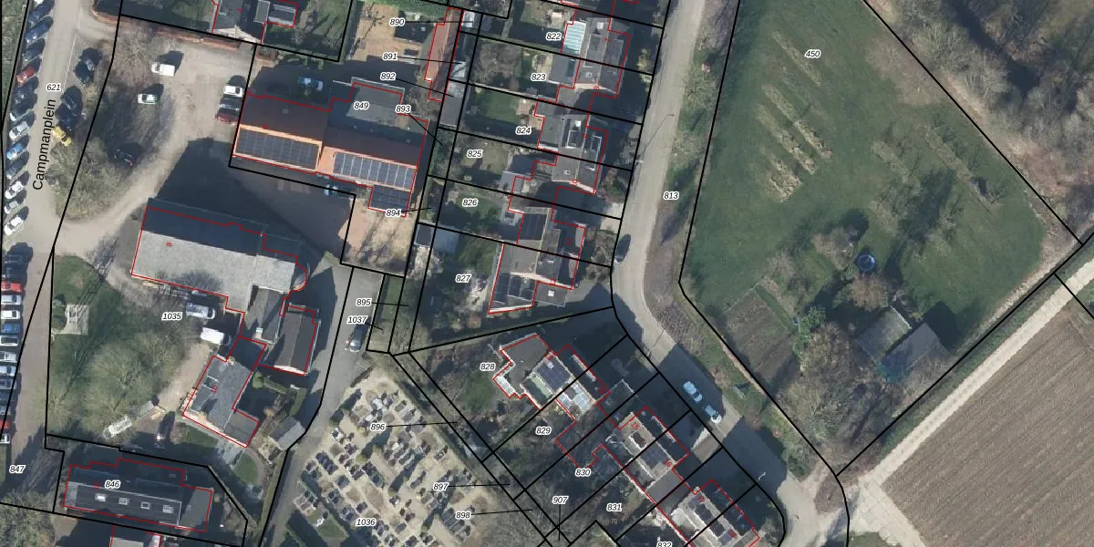 Het adres is gelegen op perceel 827 in de sectie E en de kadastrale gemeente Heteren. De kadastrale aanduiding is aldus HTR00-E-827. De gemiddelde perceelgrootte in Heteren is 5527,57 m². Dit perceel is kleiner: de perceeloppervlakte bedraagt 528 m². Het grootste perceel in de kadastrale gemeente is 55,5 ha. Het kleinste perceel heeft een oppervlakte van 1 m². Op het perceel bevinden zich geen andere adressen. De laatste wijziging in het de Basisregistratie Kadaster (BRK) was op 16-07-2012.