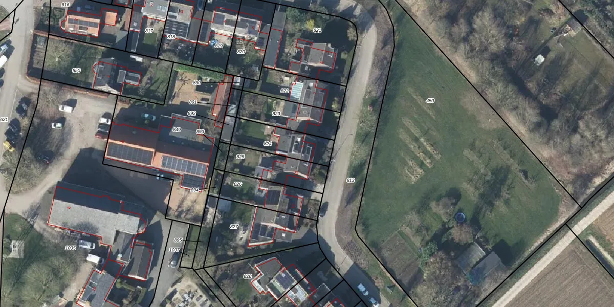 Het adres is gelegen op perceel 824 in de sectie E en de kadastrale gemeente Heteren. De kadastrale aanduiding is aldus HTR00-E-824. De gemiddelde perceelgrootte in Heteren is 5527,57 m². Dit perceel is kleiner: de perceeloppervlakte bedraagt 297 m². Het grootste perceel in de kadastrale gemeente is 55,5 ha. Het kleinste perceel heeft een oppervlakte van 1 m². Dit is het enige adres dat aanwezig is op het perceel. In de Basisregistratie Kadaster (BRK) werden de grenzen van het perceel geregistreerd op 16-07-2012.