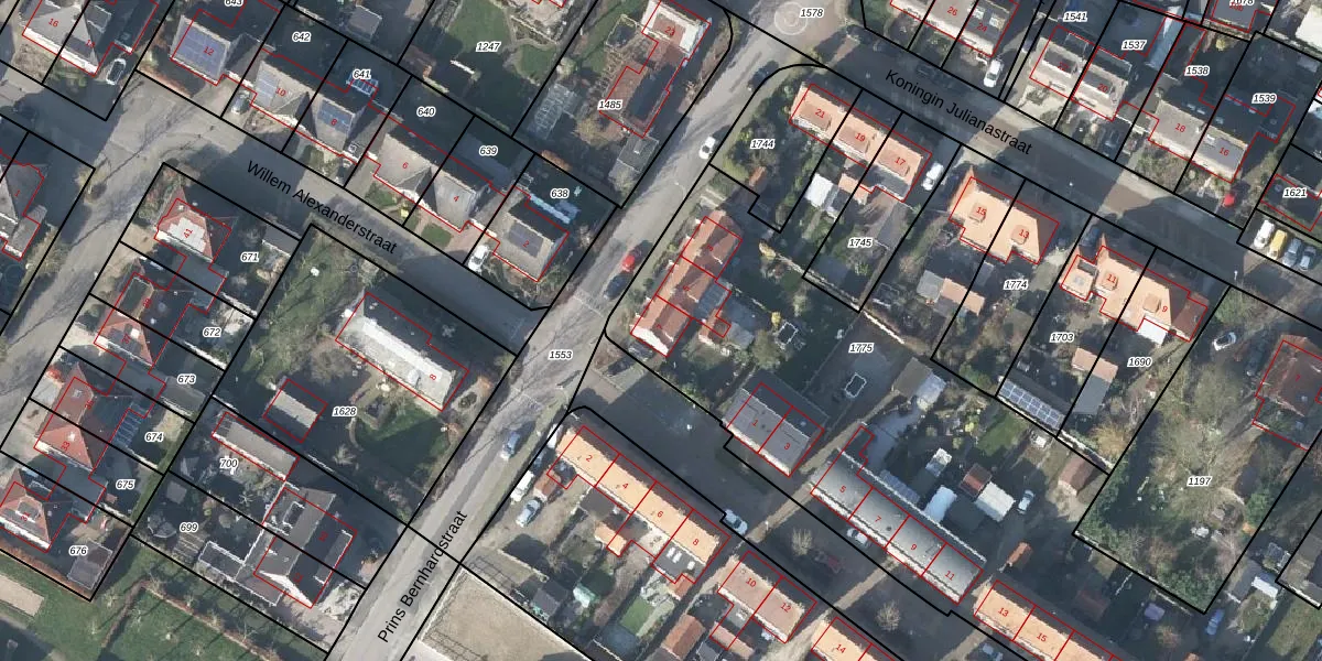 Prins Bernhardstraat 7 is gelegen op kadastraal perceel RWK03C1775. Deze kadastrale aanduiding is uniek en wordt gebruikt door het Kadaster om eigendomsrechten en andere zakelijke rechten vast te leggen. Het perceel maakt onderdeel uit van de kadastrale gemeente Randwijk.
