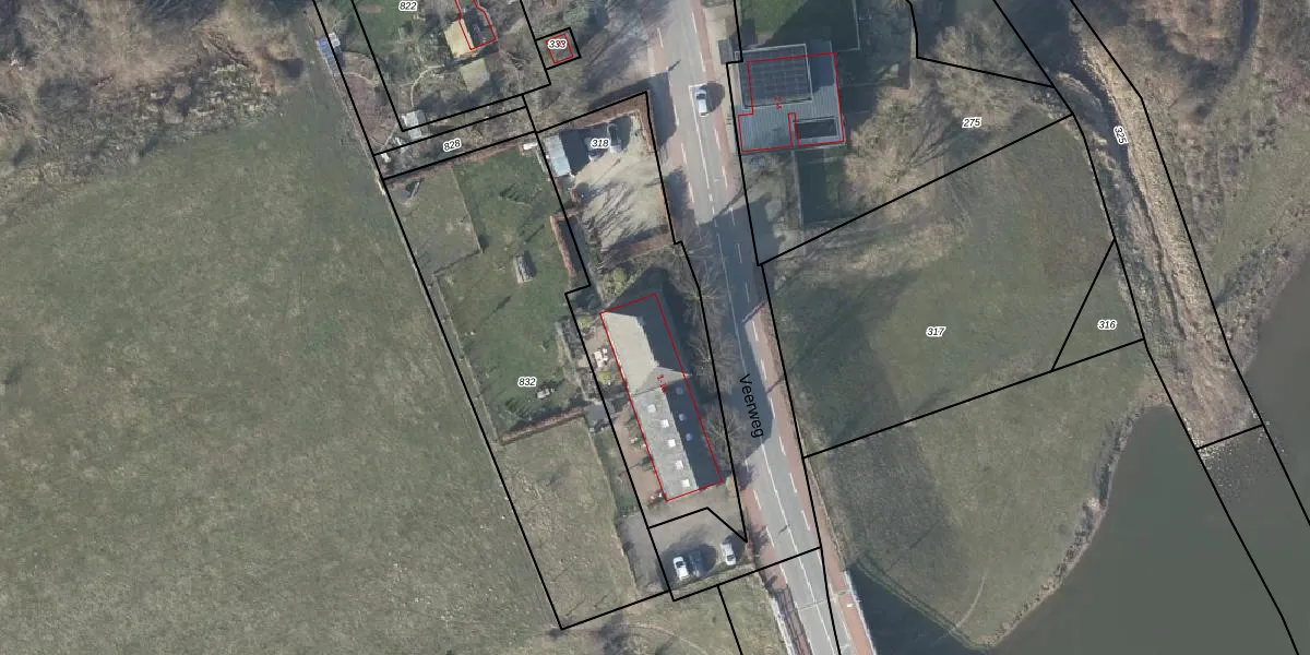 Veerweg 1-a is gelegen op kadastraal perceel RWK03A318. Deze kadastrale aanduiding is uniek en wordt gebruikt door het Kadaster om eigendomsrechten en andere zakelijke rechten vast te leggen. Het perceel maakt onderdeel uit van de kadastrale gemeente Randwijk.