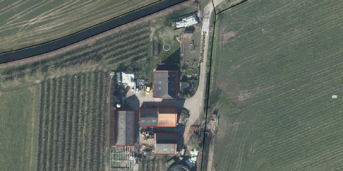 Het perceel waarop Wolfkampseweg 1 staat heeft een oppervlakte van 5,3 ha. Dit is een zeer groot perceel. De perceeloppervlakte wordt geregistreerd door het Kadaster. Gedetailleerde informatie over de maten van dit perceel kunt u vinden in het rapport Kadastrale kaart met maatvoering van Wolfkampseweg 1.