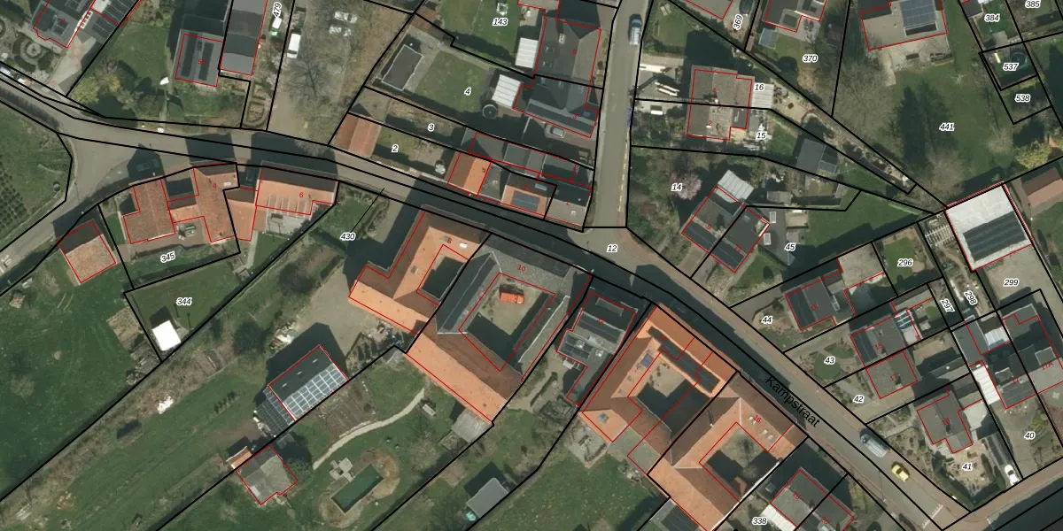 Kampstraat 10 is gelegen op kadastraal perceel VRD00K491. Deze kadastrale aanduiding is uniek en wordt gebruikt door het Kadaster om eigendomsrechten en andere zakelijke rechten vast te leggen. Het perceel maakt onderdeel uit van de kadastrale gemeente Voerendaal.