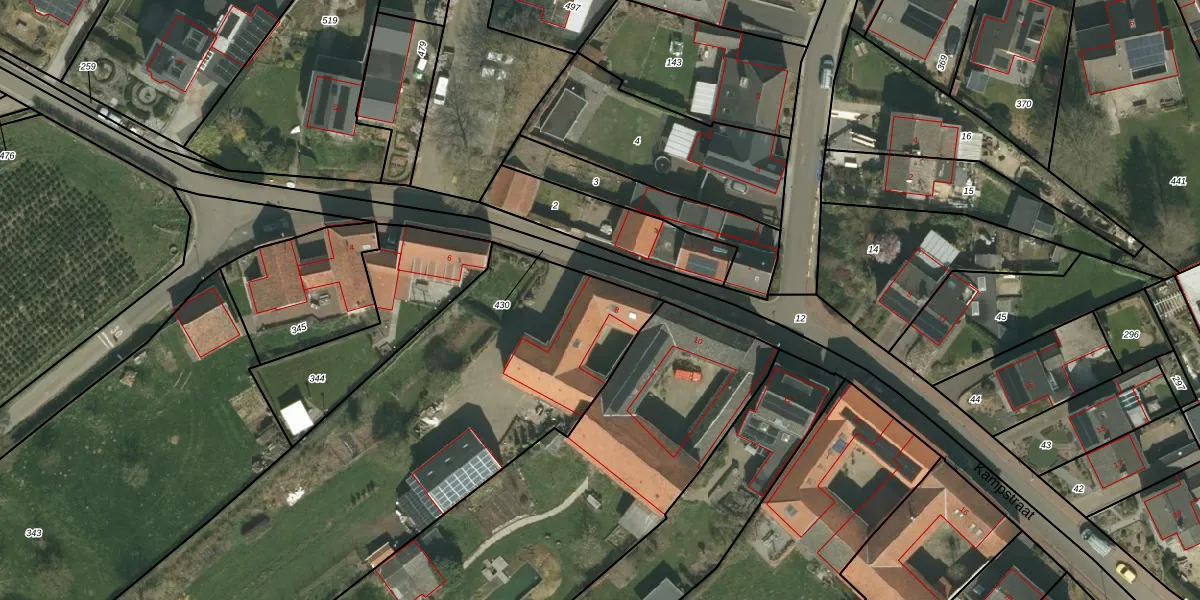 Kampstraat 8 is gelegen op kadastraal perceel VRD00K342. Deze kadastrale aanduiding is uniek en wordt gebruikt door het Kadaster om eigendomsrechten en andere zakelijke rechten vast te leggen. Het perceel maakt onderdeel uit van de kadastrale gemeente Voerendaal.
