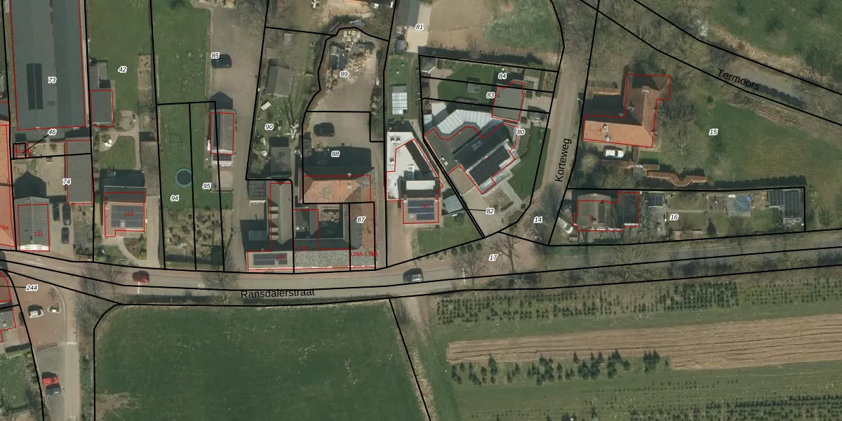 Het perceel waarop Ransdalerstraat 141 staat heeft een oppervlakte van 1782 m². Dit is een zeer groot perceel. De perceeloppervlakte wordt geregistreerd door het Kadaster. Gedetailleerde informatie over de maten van dit perceel kunt u vinden in het rapport Kadastrale kaart met maatvoering van Ransdalerstraat 141.