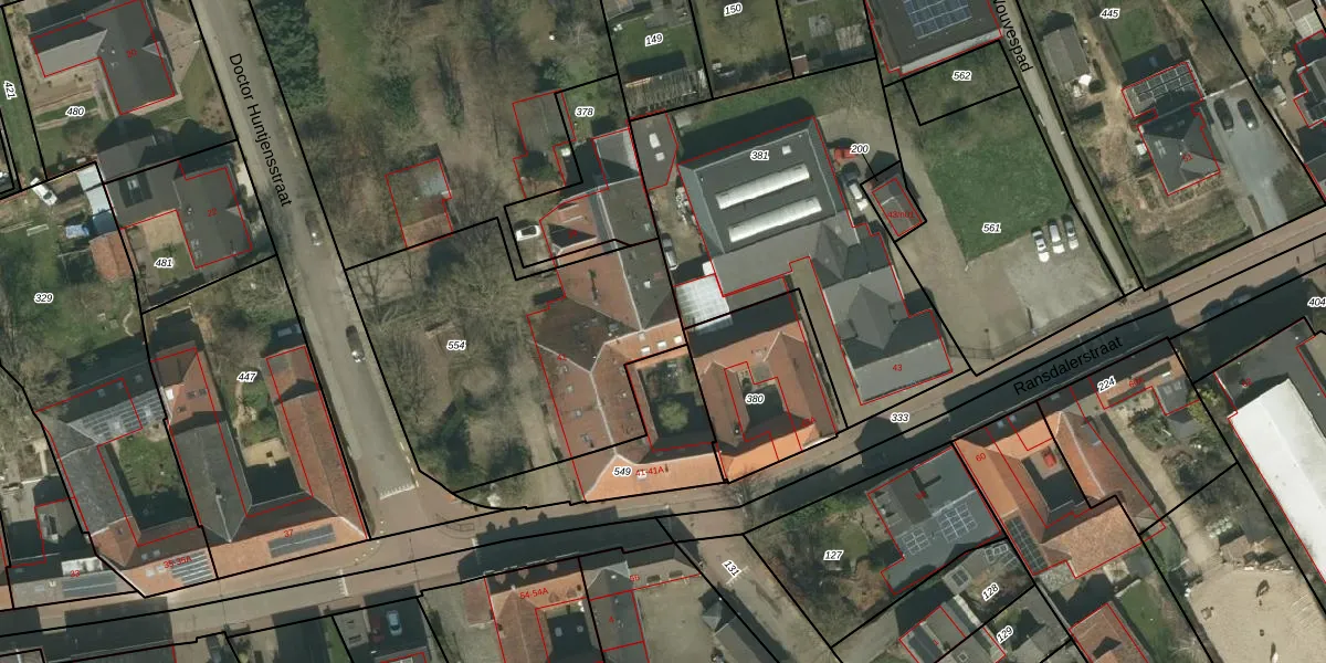 Het perceel waarop Ransdalerstraat 41-D staat heeft een oppervlakte van 1370 m². Dit is een zeer groot perceel. De perceeloppervlakte wordt geregistreerd door het Kadaster. Gedetailleerde informatie over de maten van dit perceel kunt u vinden in het rapport Kadastrale kaart met maatvoering van Ransdalerstraat 41-D.