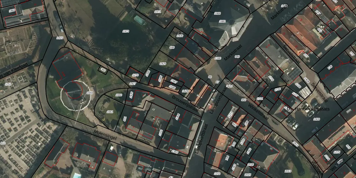Gebruik de zoekbalk of klik op een perceel voor informatie over de adressen binnen dit perceel.