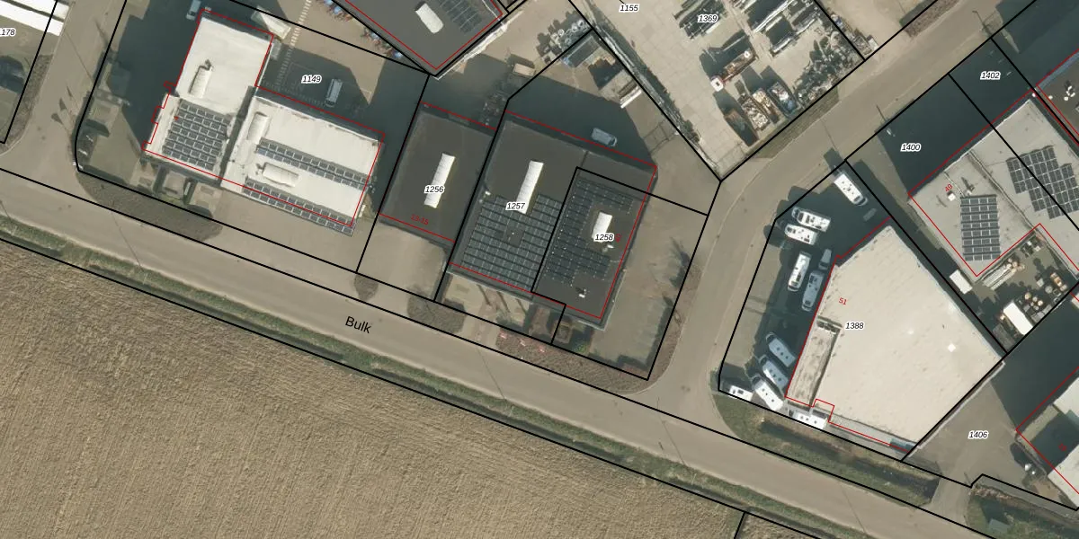 Het perceel waarop Bulk 15 staat heeft een oppervlakte van 1261 m². Dit is een zeer groot perceel. De perceeloppervlakte wordt geregistreerd door het Kadaster. Gedetailleerde informatie over de maten van dit perceel kunt u vinden in het rapport Kadastrale kaart met maatvoering van Bulk 15.
