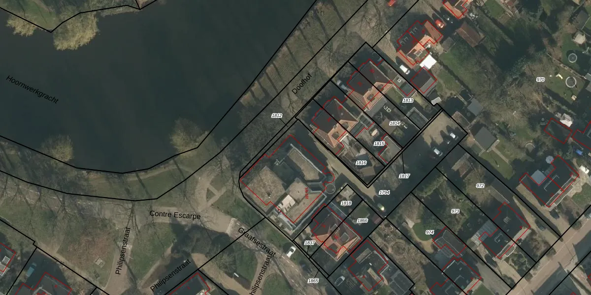 Het perceel waarop Doolhof 1-C staat heeft een oppervlakte van 1355 m². Dit is een zeer groot perceel. De perceeloppervlakte wordt geregistreerd door het Kadaster. Gedetailleerde informatie over de maten van dit perceel kunt u vinden in het rapport Kadastrale kaart met maatvoering van Doolhof 1-C.