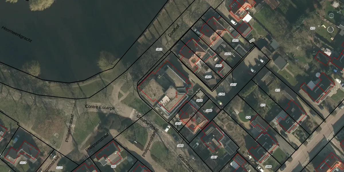 Het perceel waarop Doolhof 1-E staat heeft een oppervlakte van 1355 m². Dit is een zeer groot perceel. De perceeloppervlakte wordt geregistreerd door het Kadaster. Gedetailleerde informatie over de maten van dit perceel kunt u vinden in het rapport Kadastrale kaart met maatvoering van Doolhof 1-E.
