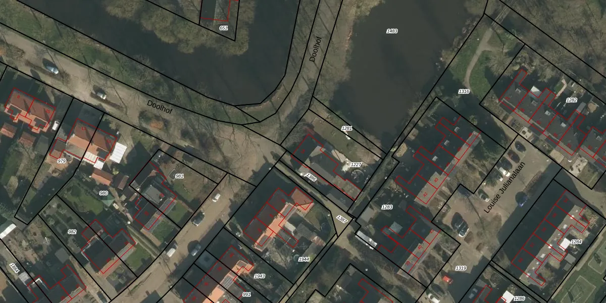 Het perceel waarop Doolhof 14 staat heeft een oppervlakte van 488 m². Dit is een groot perceel. De perceeloppervlakte wordt geregistreerd door het Kadaster. Gedetailleerde informatie over de maten van dit perceel kunt u vinden in het rapport Kadastrale kaart met maatvoering van Doolhof 14.