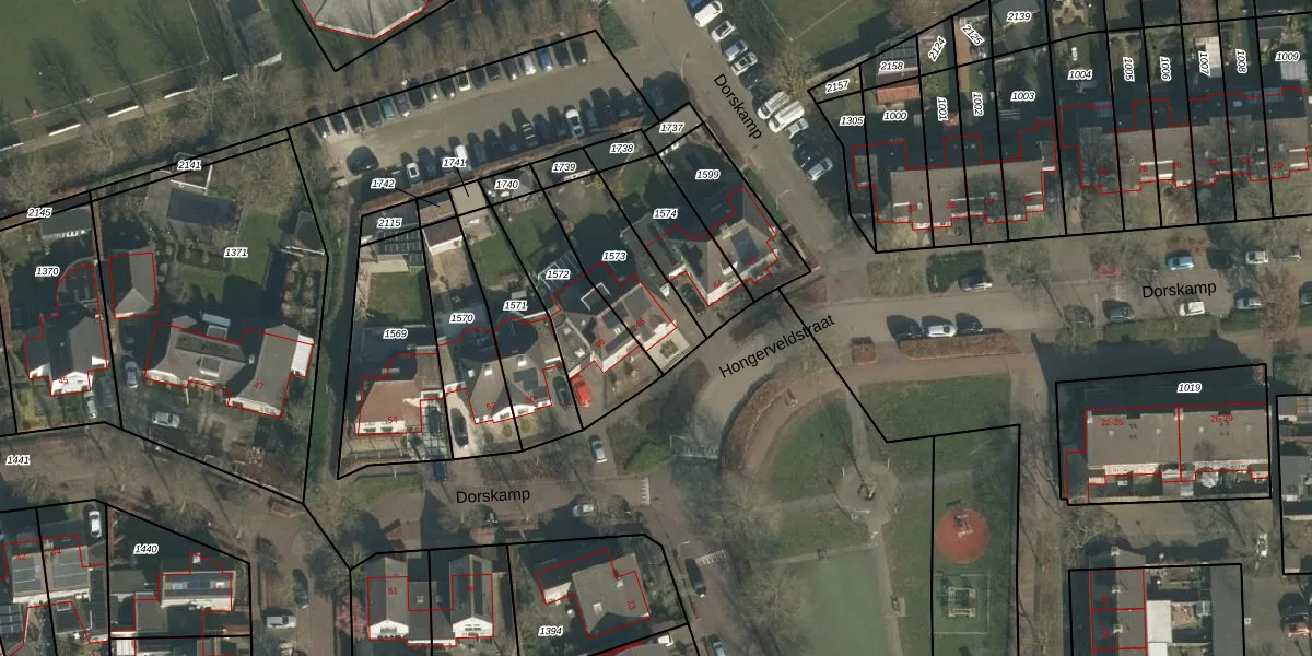 Het perceel waarop Dorskamp 46 staat heeft een oppervlakte van 298 m². Dit is een middelgroot perceel. De perceeloppervlakte wordt geregistreerd door het Kadaster. Gedetailleerde informatie over de maten van dit perceel kunt u vinden in het rapport Kadastrale kaart met maatvoering van Dorskamp 46.