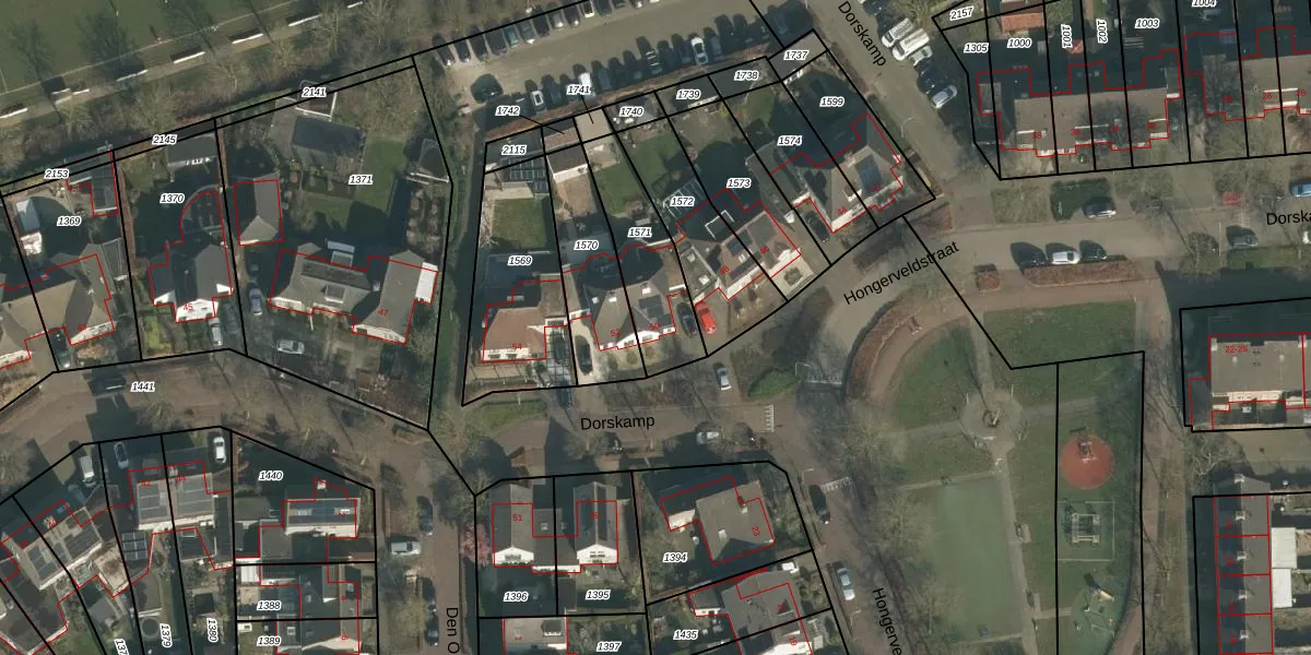 Het perceel waarop Dorskamp 50 staat heeft een oppervlakte van 302 m². Dit is een groot perceel. De perceeloppervlakte wordt geregistreerd door het Kadaster. Gedetailleerde informatie over de maten van dit perceel kunt u vinden in het rapport Kadastrale kaart met maatvoering van Dorskamp 50.
