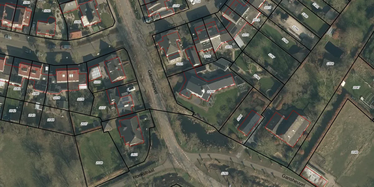Het perceel waarop Gansheuvel 2 staat heeft een oppervlakte van 1031 m². Dit is een zeer groot perceel. De perceeloppervlakte wordt geregistreerd door het Kadaster. Gedetailleerde informatie over de maten van dit perceel kunt u vinden in het rapport Kadastrale kaart met maatvoering van Gansheuvel 2.