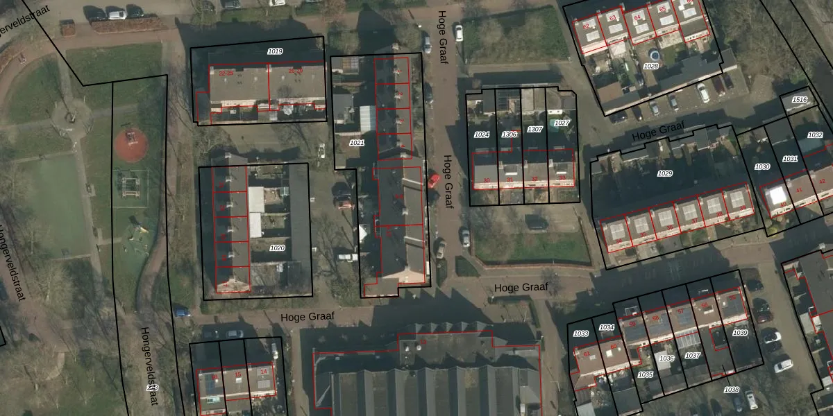 Het perceel waarop Hoge Graaf 7 staat heeft een oppervlakte van 1104 m². Dit is een zeer groot perceel. De perceeloppervlakte wordt geregistreerd door het Kadaster. Gedetailleerde informatie over de maten van dit perceel kunt u vinden in het rapport Kadastrale kaart met maatvoering van Hoge Graaf 7.