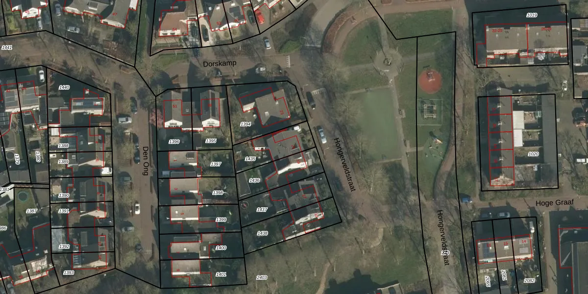 Gebruik de zoekbalk of klik op een perceel voor informatie over de adressen binnen dit perceel.