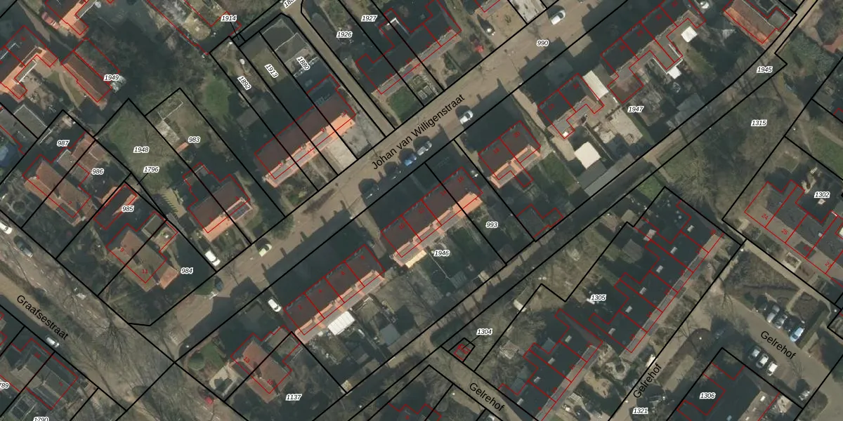 Het perceel waarop Johan van Willigenstraat 12 staat heeft een oppervlakte van 1880 m². Dit is een zeer groot perceel. De perceeloppervlakte wordt geregistreerd door het Kadaster. Gedetailleerde informatie over de maten van dit perceel kunt u vinden in het rapport Kadastrale kaart met maatvoering van Johan van Willigenstraat 12.
