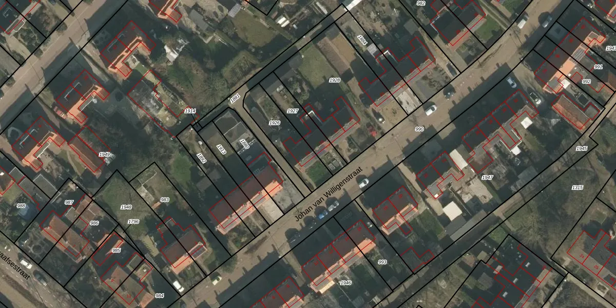 Johan van Willigenstraat 13 is gelegen op kadastraal perceel RVS00A1926. Deze kadastrale aanduiding is uniek en wordt gebruikt door het Kadaster om eigendomsrechten en andere zakelijke rechten vast te leggen. Het perceel maakt onderdeel uit van de kadastrale gemeente Ravenstein.