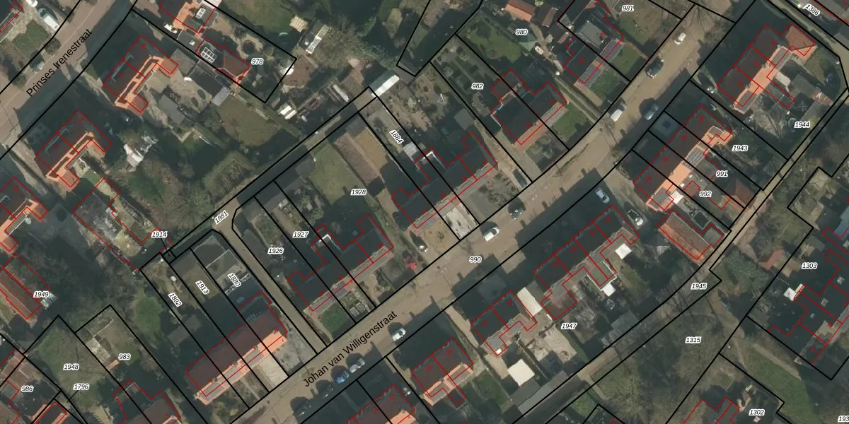 Het perceel waarop Johan van Willigenstraat 21 staat heeft een oppervlakte van 980 m². Dit is een groot perceel. De perceeloppervlakte wordt geregistreerd door het Kadaster. Gedetailleerde informatie over de maten van dit perceel kunt u vinden in het rapport Kadastrale kaart met maatvoering van Johan van Willigenstraat 21.