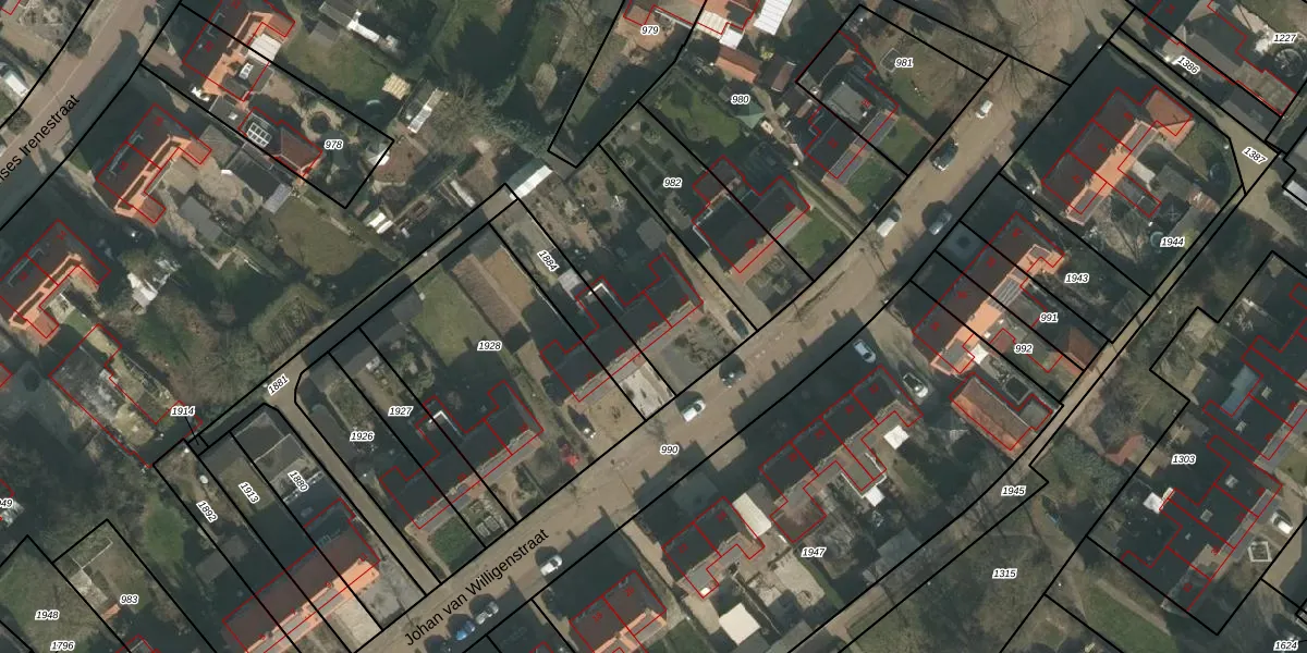 Het perceel waarop Johan van Willigenstraat 25 staat heeft een oppervlakte van 7407 m². Dit is een zeer groot perceel. De perceeloppervlakte wordt geregistreerd door het Kadaster. Gedetailleerde informatie over de maten van dit perceel kunt u vinden in het rapport Kadastrale kaart met maatvoering van Johan van Willigenstraat 25.