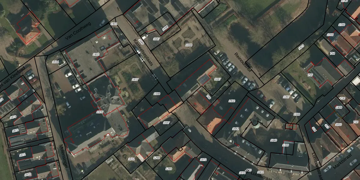 Het perceel waarop Kasteelseplaats 2 staat heeft een oppervlakte van 512 m². Dit is een groot perceel. De perceeloppervlakte wordt geregistreerd door het Kadaster. Gedetailleerde informatie over de maten van dit perceel kunt u vinden in het rapport Kadastrale kaart met maatvoering van Kasteelseplaats 2.