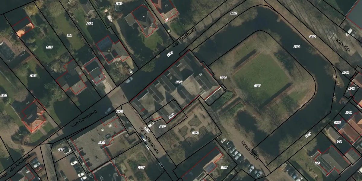 Het perceel waarop Kasteelseplaats 46 staat heeft een oppervlakte van 960 m². Dit is een groot perceel. De perceeloppervlakte wordt geregistreerd door het Kadaster. Gedetailleerde informatie over de maten van dit perceel kunt u vinden in het rapport Kadastrale kaart met maatvoering van Kasteelseplaats 46.
