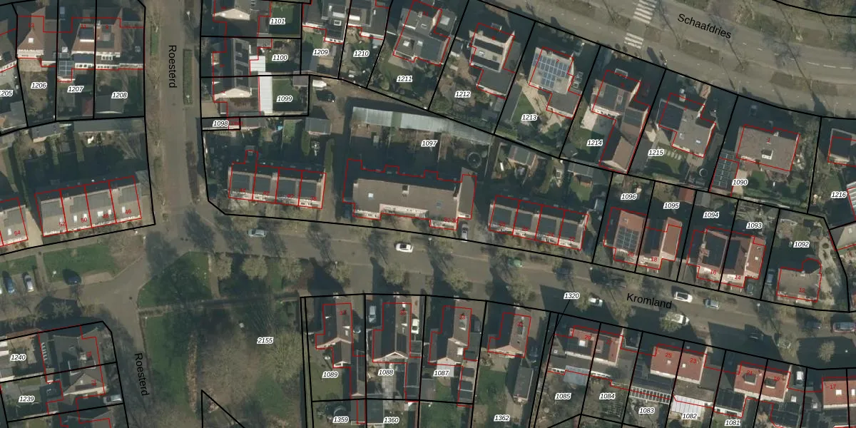Het perceel waarop Kromland 34 staat heeft een oppervlakte van 2448 m². Dit is een zeer groot perceel. De perceeloppervlakte wordt geregistreerd door het Kadaster. Gedetailleerde informatie over de maten van dit perceel kunt u vinden in het rapport Kadastrale kaart met maatvoering van Kromland 34.