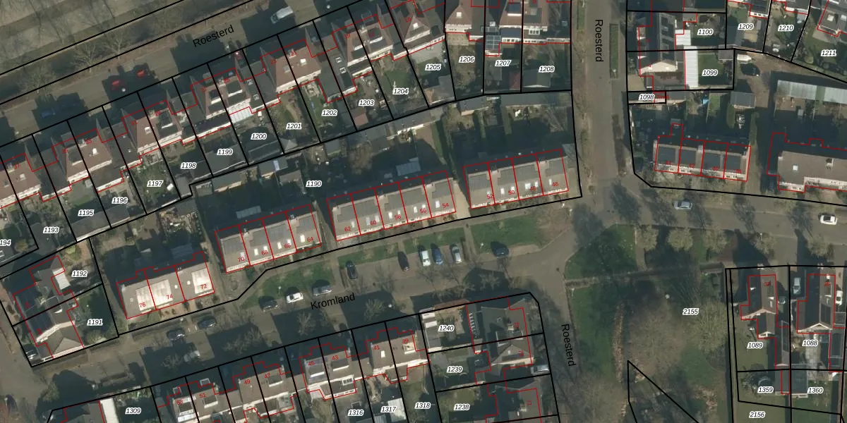 Het perceel waarop Kromland 56 staat heeft een oppervlakte van 3054 m². Dit is een zeer groot perceel. De perceeloppervlakte wordt geregistreerd door het Kadaster. Gedetailleerde informatie over de maten van dit perceel kunt u vinden in het rapport Kadastrale kaart met maatvoering van Kromland 56.