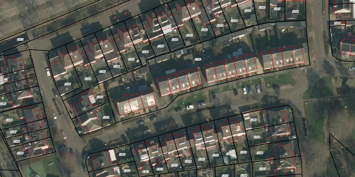 Het perceel waarop Kromland 68 staat heeft een oppervlakte van 3054 m². Dit is een zeer groot perceel. De perceeloppervlakte wordt geregistreerd door het Kadaster. Gedetailleerde informatie over de maten van dit perceel kunt u vinden in het rapport Kadastrale kaart met maatvoering van Kromland 68.