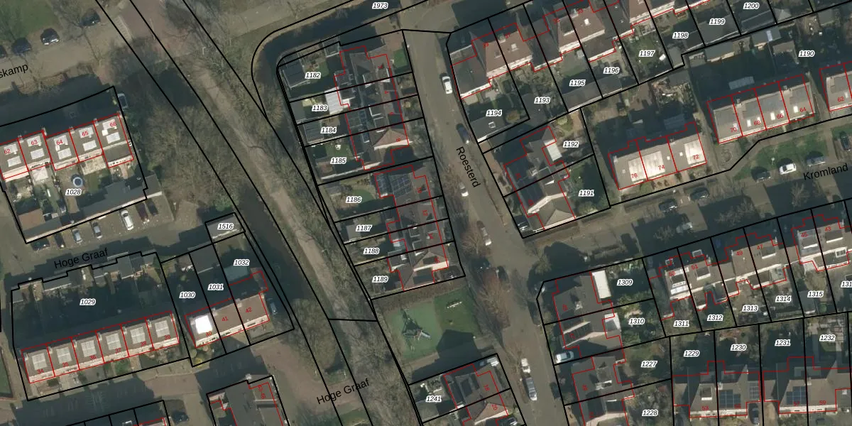 Het perceel waarop Roesterd 12 staat heeft een oppervlakte van 143 m². Dit is een middelgroot perceel. De perceeloppervlakte wordt geregistreerd door het Kadaster. Gedetailleerde informatie over de maten van dit perceel kunt u vinden in het rapport Kadastrale kaart met maatvoering van Roesterd 12.