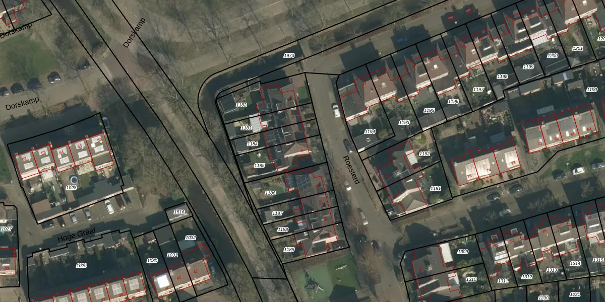 Gebruik de zoekbalk of klik op een perceel voor informatie over de adressen binnen dit perceel.
